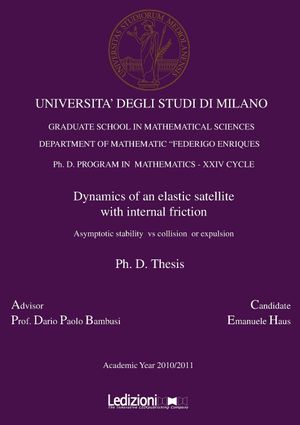 In this thesis, we study the dynamics of an elastic body whose shape and position evolve due to the gravitational forces exerted by a point-like planet whose position is fixed in the space. The first result of the thesis is that, if any internal deformation of the body dissipates some energy, then the dynamics of the system has only three possible final behaviors: (i) the satellite is expelled to infiniy; (ii) the satellite falls on the planet; (iii) the satellite is captured in synchronous resonance. By item (iii) we mean that the shape of the body reaches a final configuration that a principal axis of inertia is directed towards the attracting planet and that the center of mass of satellite moves on a circle of constant radius.