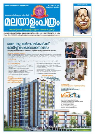 Malayalam weekly news paper for NRIs especially in USA. News, News analysys, Columns, Story, Poems, Features, Cinema, Cartoons , Novel , NRI local news etc..are our special features. This is the 25th year of our publishing.